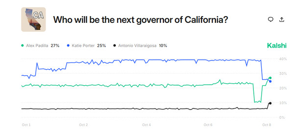 The bookies had Porter as the favorite in the California's governor's race prior to this interview. You can see the exact moment the internet aired on the chart below: